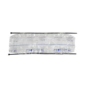 • Plaats de zak om de buis en zorg dat het begin en het einde van de gel elkaar overlappen, trek vervolgens de tie-wraps aan.